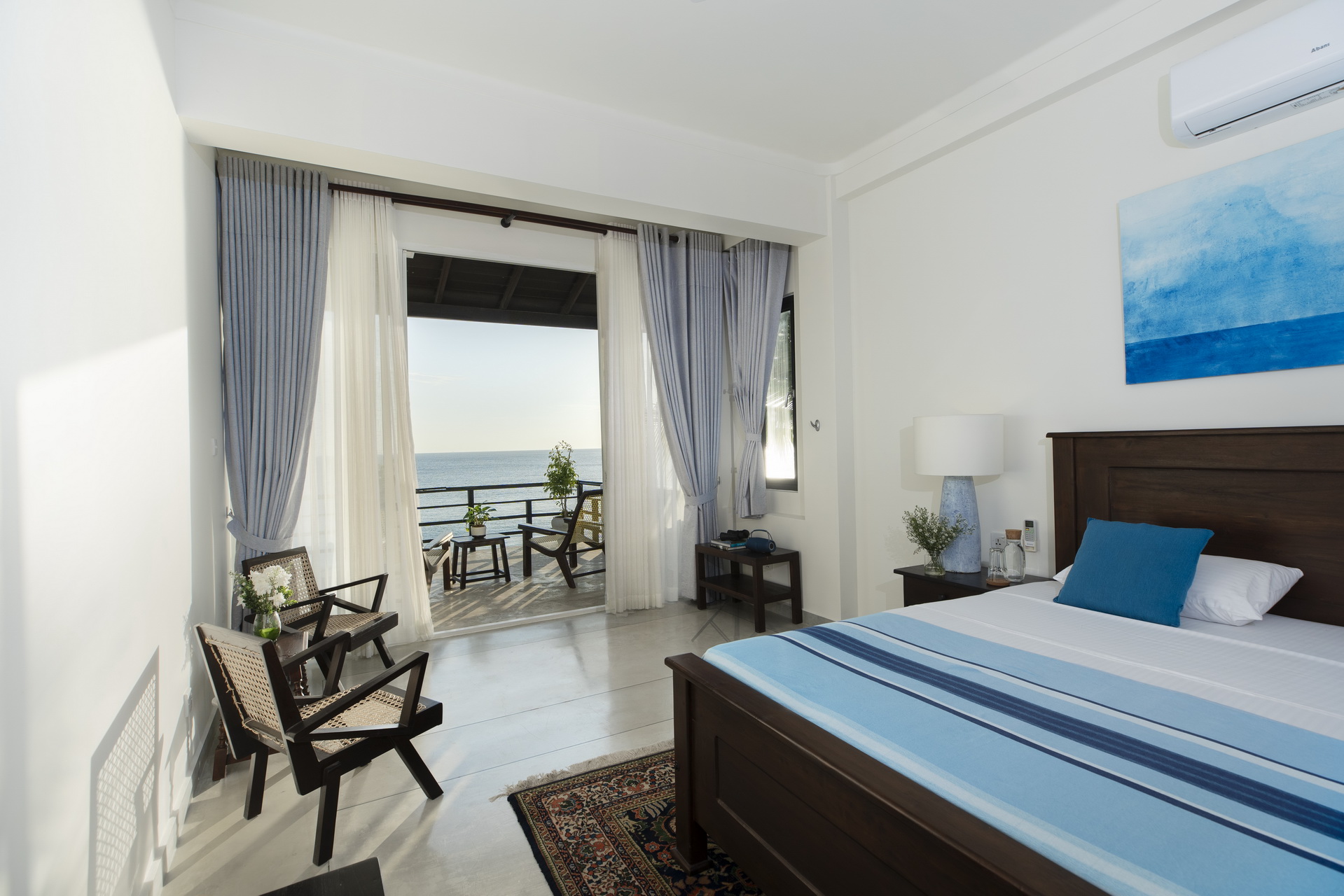 As the sun rises over the horizon, you’ll be greeted by a spectacular display of colors, creating a serene backdrop for your stay. Wake up in our seaside-facing bedroom, designed for comfort and tranquility.