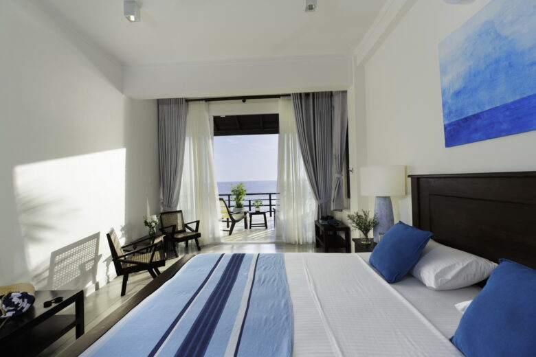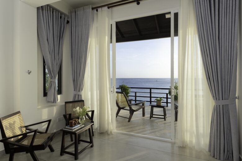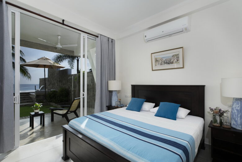 As the sun rises over the horizon, you’ll be greeted by a spectacular display of colors, creating a serene backdrop for your stay. Wake up in our seaside-facing bedroom, designed for comfort and tranquility.